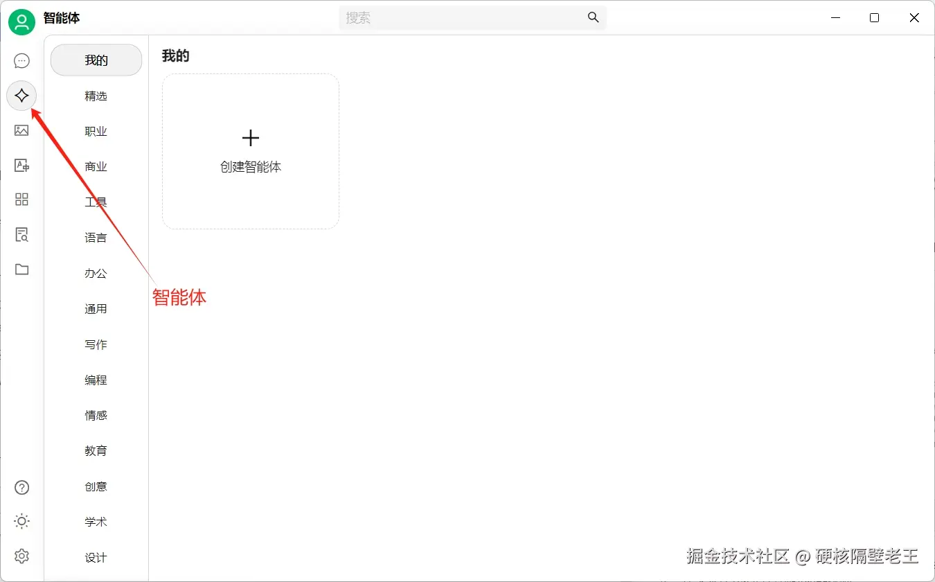 我们点击右侧“创建智能体”来创建一个自定义的智能体。