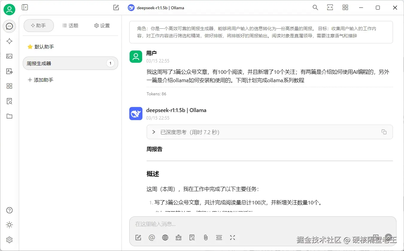 输入你本周的工作内容,试试deepseek帮你生成的周报吧