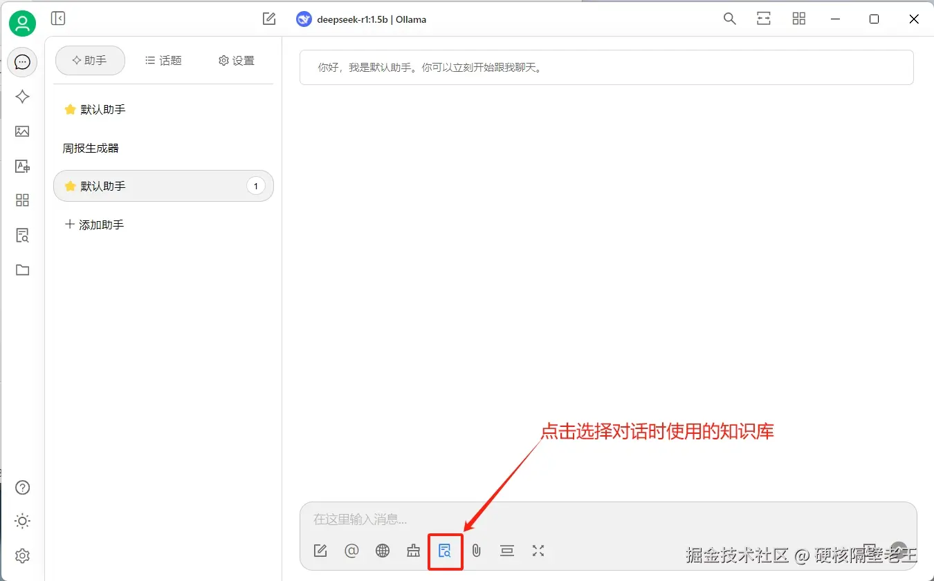 然后创建一个新的对话,在对话中选择创建的知识库: