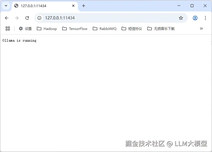 也打开浏览器,输入Ollama 运行地址 “http://127.0.0.1:11434”