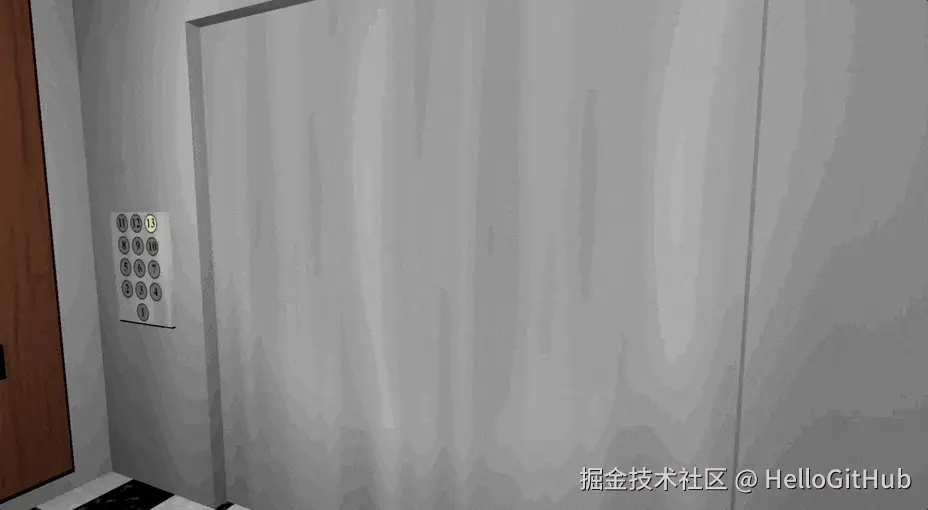 这是一款潜行恐怖(Stealth Horror)游戏,玩家需要时刻保持警觉,巧妙利用阴影进行躲藏。游戏开始,你带着一把钥匙出现在第 13 层,需要找到对应房间,获取下一把钥匙,逐步解锁新房间,直到最终抵达终点房间——1313。