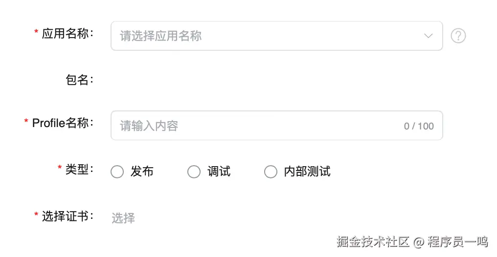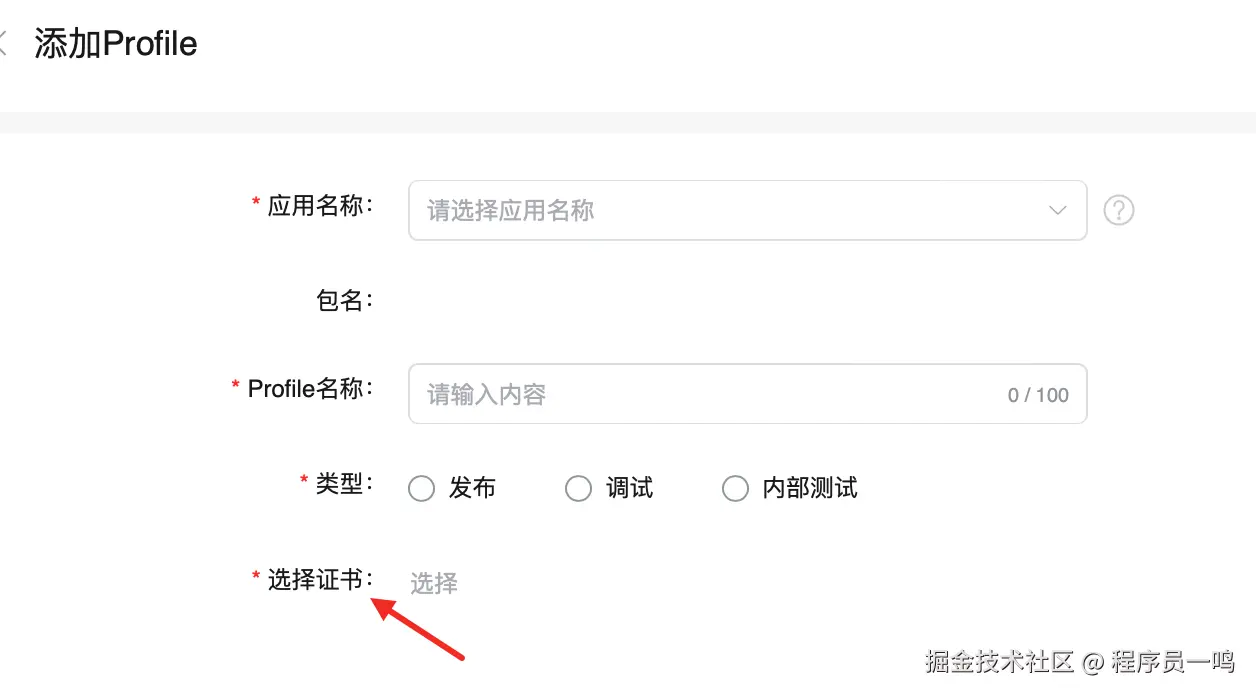 我们可以看到,创建一个Profile,第一步,就需要选择应用名称,所以,在这里,如果你已经创建了应用,直接选择即可,如果还未创建应用,请回到第二步骤进行创建应用。
