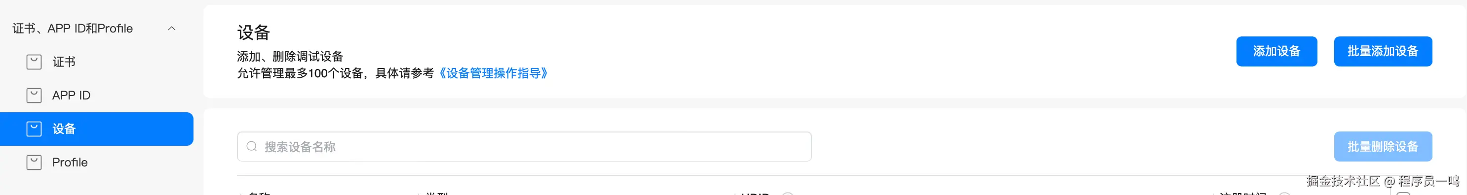 创建Profile,有一点需要知道,那就是,如果你只需要自身的一台设备进行应用的运行和测试,其实大可不必大费周章,直接使用本地的签名信息就行,也就是第一篇概述中的自动签名配置;当然如果,你要用于多设备的调试和正式上架,那么Profile文件才是必须需要的。