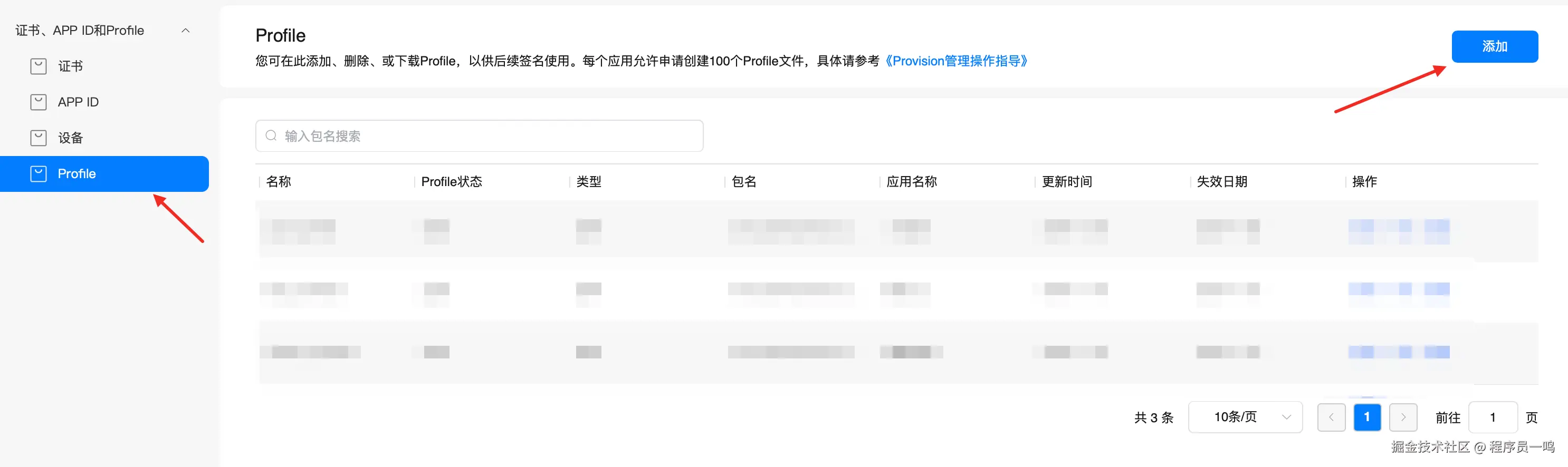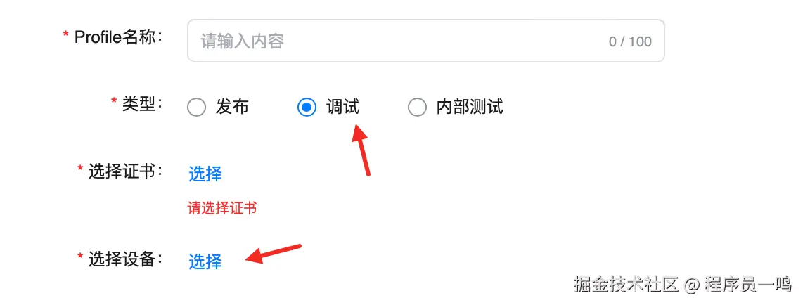 我们需要知道,根据使用场景的不同,Profile分为调试Profile、发布Profile,还有内部测试,三种方式,所以,再接下来的创建中,大家一定要根据需要进行创建。