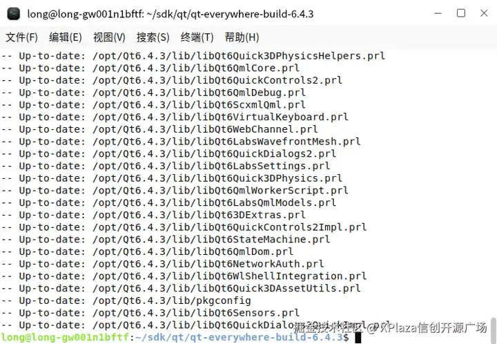 ~/sdk/qt/qt-everywhere-src-6.4.3/configure -prefix /opt/Qt6.4.3 #配置,没有prefix默认安装在/usr/local/Qt-%VERSION%;默认使用clang,可以通过platform参数指定编译平台