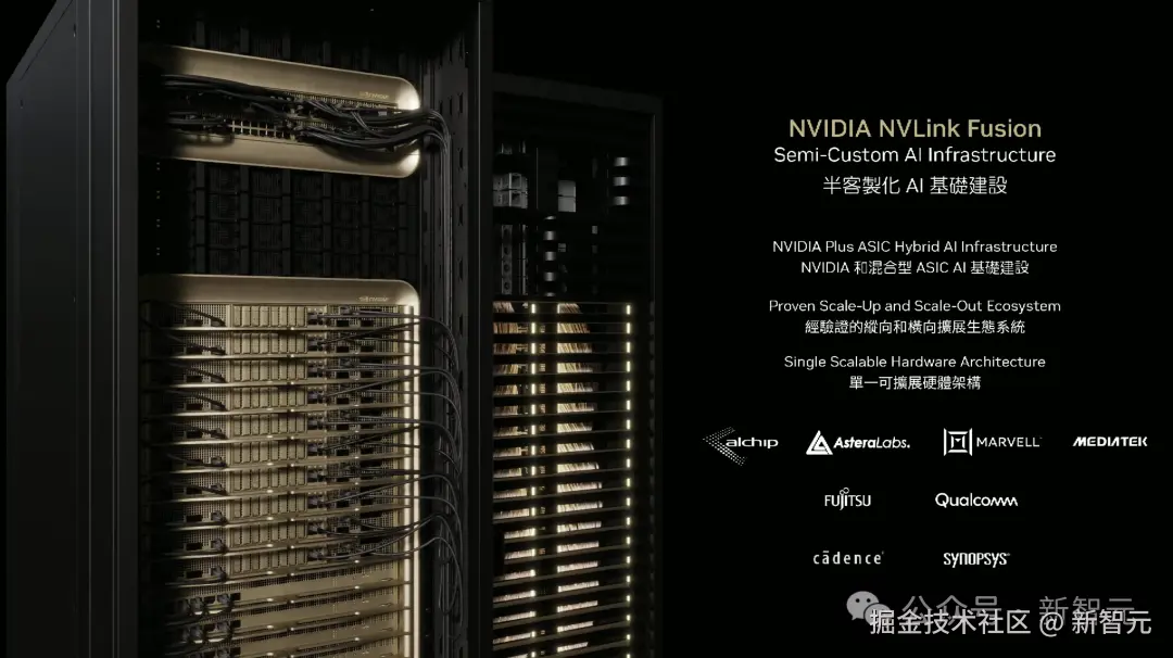 全新 NVlink Fusion:半定制化超算,支持各种硬件混搭,可实现整个基础设施的端到端打造