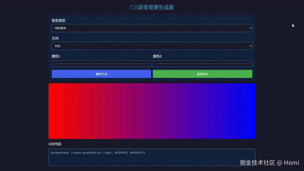 <title>CSS渐变背景生成器</title>