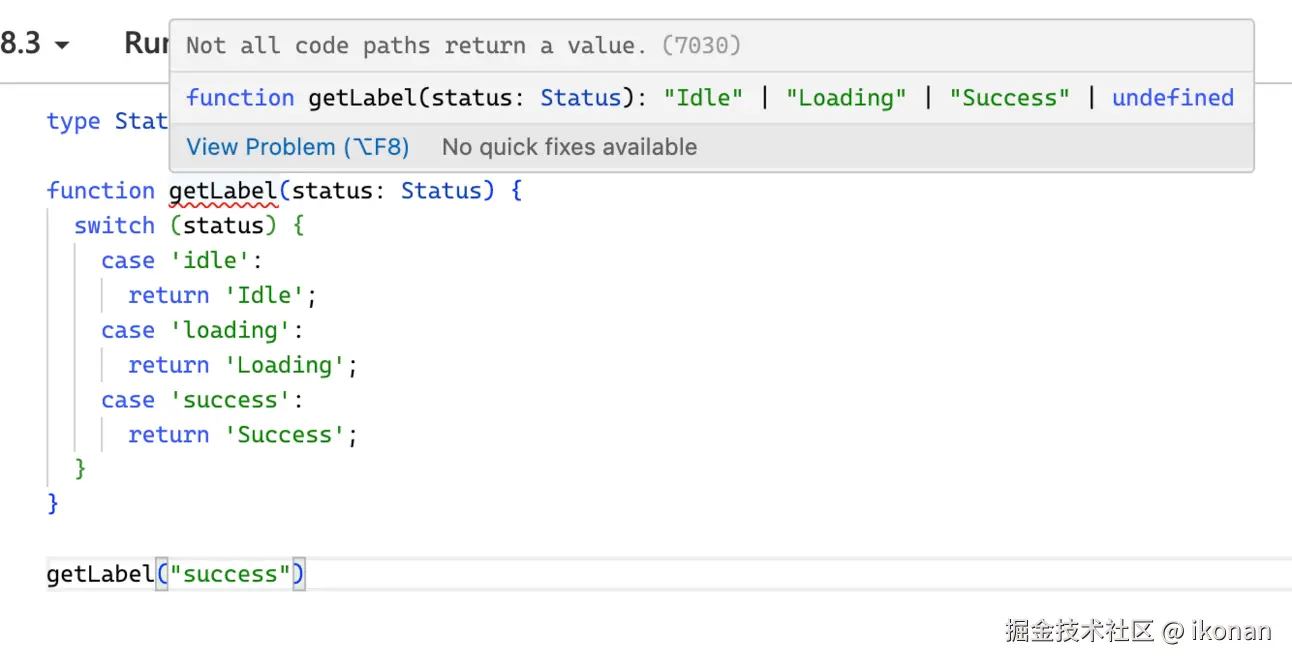 当我们忘记处理某个情况时的 TypeScript 错误