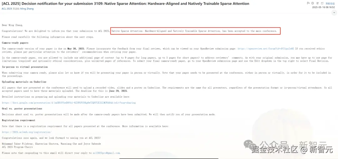 【新智元导读】北大 DeepSeek 联合发布的 NSA 论文,目前已被 ACL 2025 录用并获得了极高评分,甚至有望冲击最佳论文奖。该技术颠覆传统注意力机制,实现算力效率飞跃,被誉为长文本处理的革命性突破。