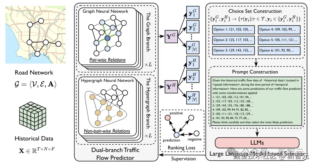 随后,利用大语言模型从这些预测中选择最有可能的结果,并通过排序损失函数作为学习目标来增强两个分支的预测能力。在多个数据集上的广泛实验验证了 LEAF 的有效性,证明其在流量预测任务中能够更好地适应测试环境变化。