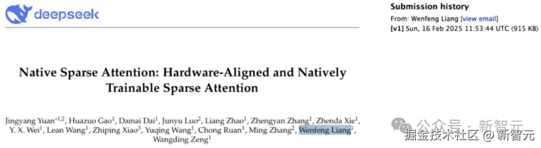 通讯作者为梁文锋(DeepSeek),曾旺丁(DeepSeek),张铭教授(北京大学)。