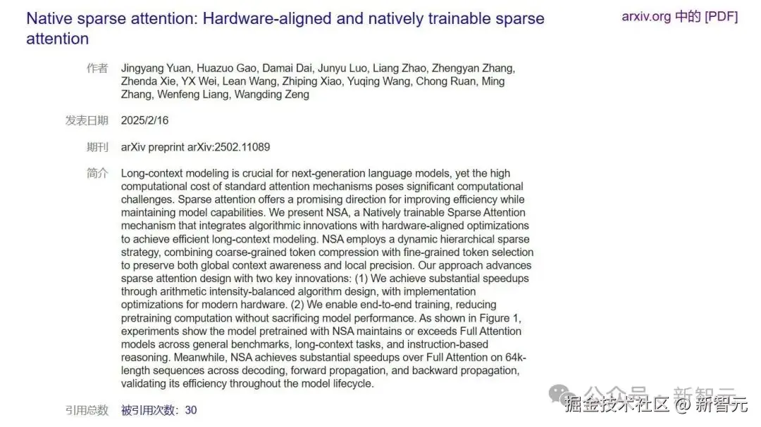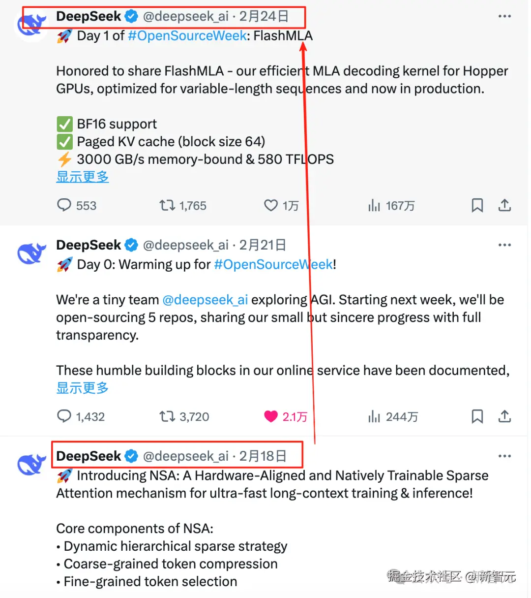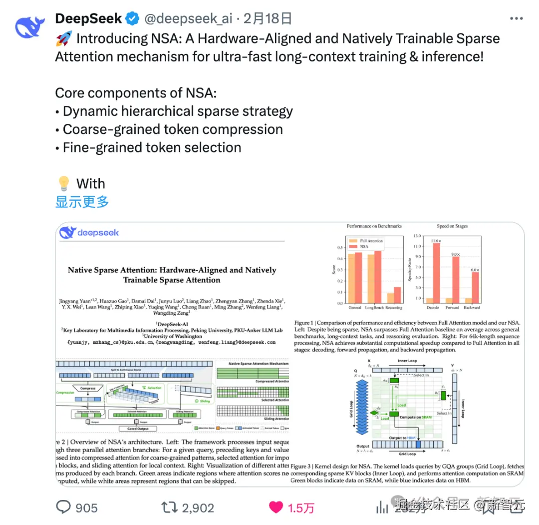 NSA 是 DeepSeek-R1「爆火出圈」后的第一篇论文,同时在 NSA 发布一周后,DeepSeek 进行了更广为人知的「开源周」活动分享。