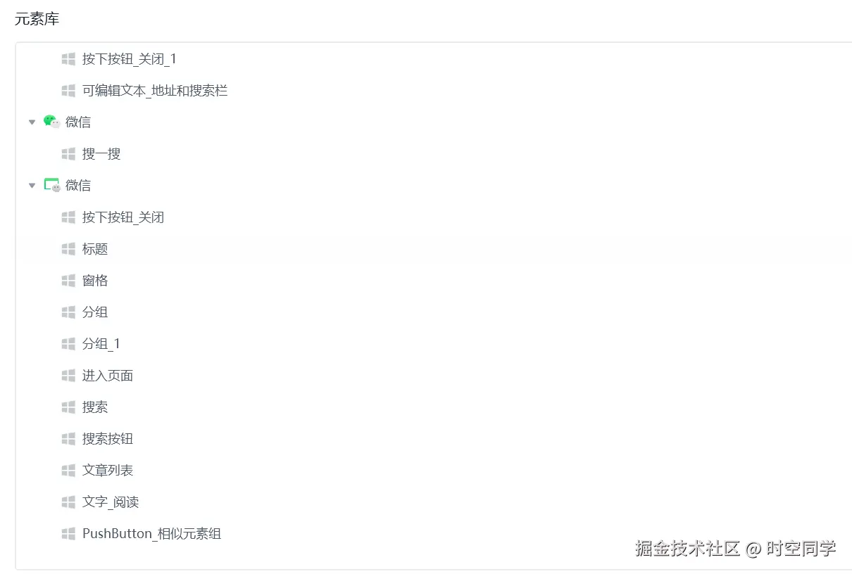 1.收集元素: 先根据流程收集你需要的元素到元素库中,获取不到的可以获取图像到图像库。