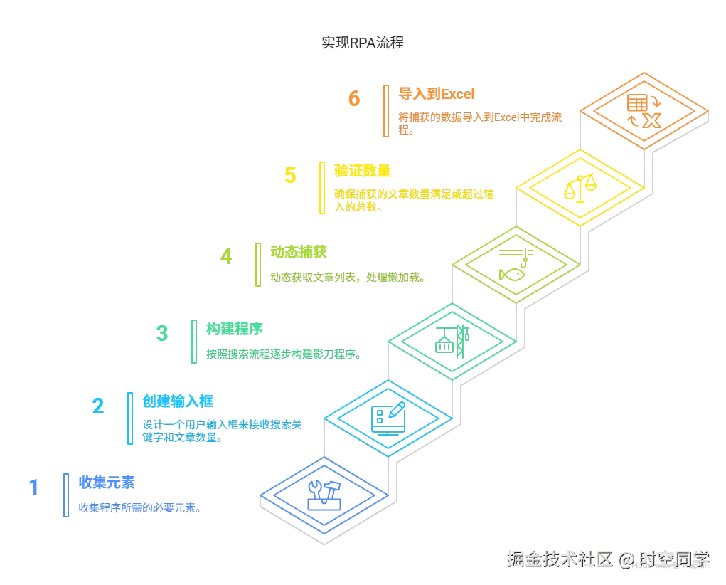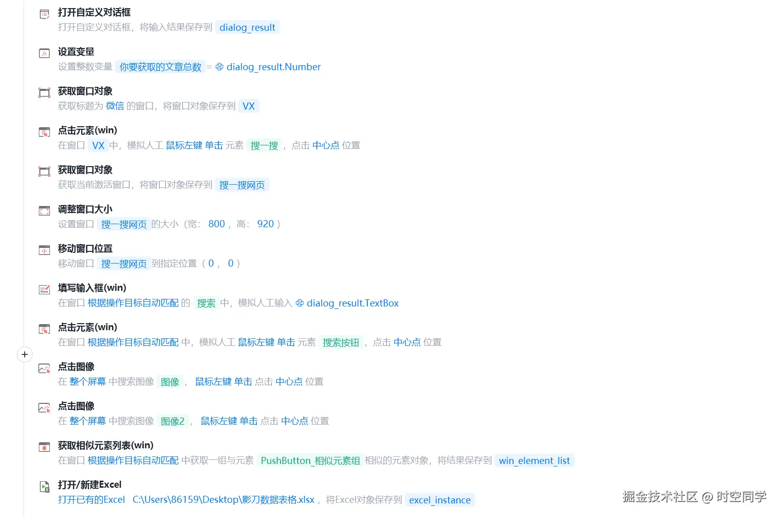 - 按搜索流程一步步的搭建影刀程序。
