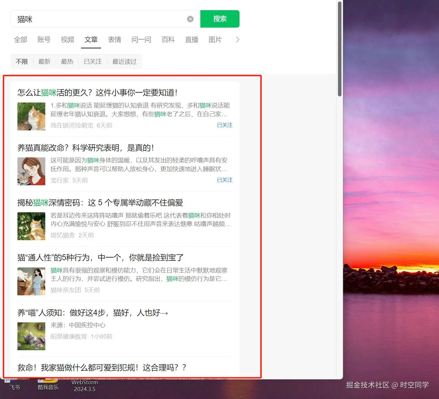 2.基础搭建: 根据第一步获取到的元素,一步步的进行到搜索页面,其中要注意的一些细节,设置窗口的宽高,有助于你文章循环时更好的控制下滑鼠标。