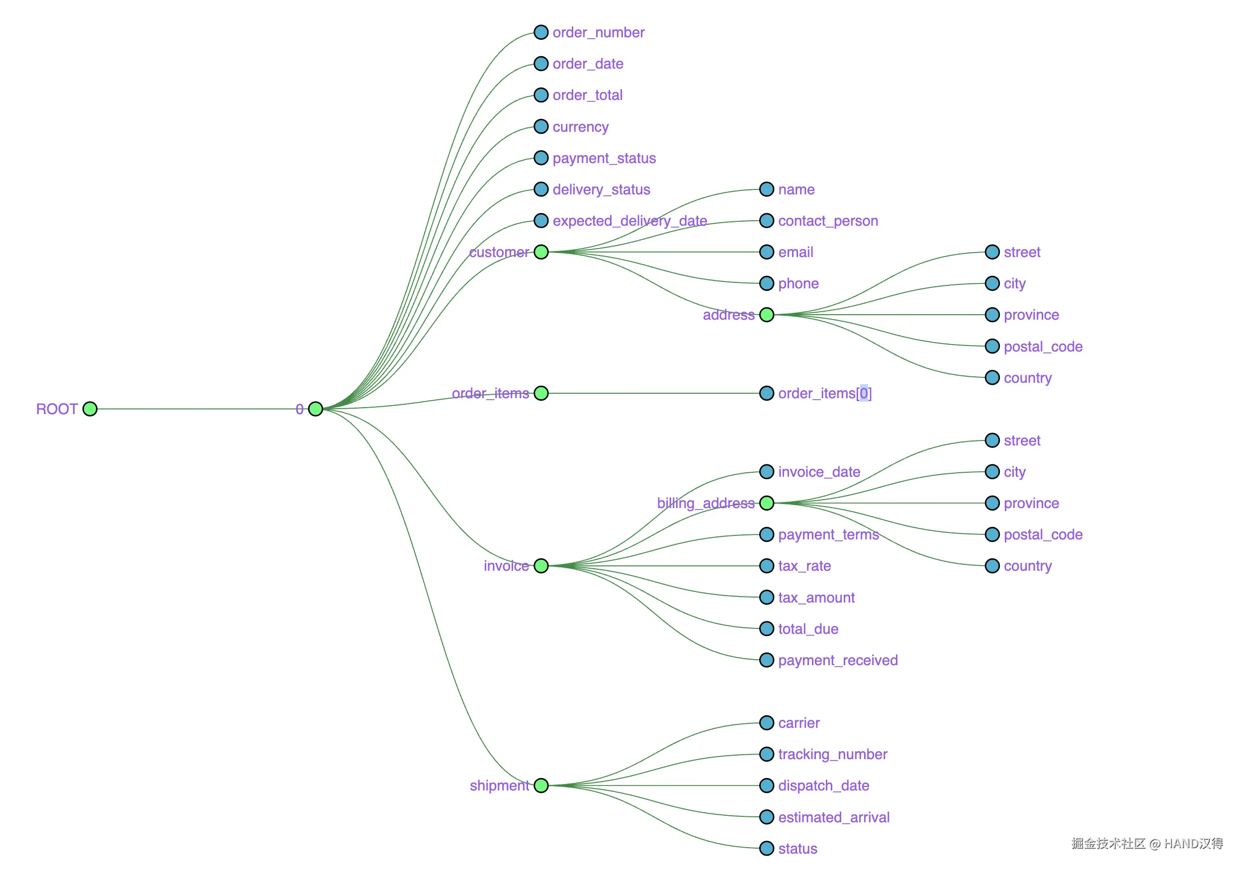 数据采集流程(本文不体现)把订单关联数据按批次抽取到集成平台,会将批订单数据处理形成JSON报文,将待处理的目标报文数据投递到本流程作为入参,本订单入库流程需要将入参按不同模块拆解分别编排进入对应表中。具体报文结构如下: