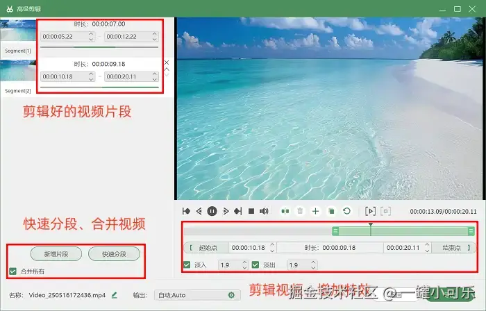 步骤3:录制结束后,你可以通过 “预览页面” 下方的 “高级剪辑” 工具,对视频进行后期剪辑,添加特效效果、剪辑视频片段等。