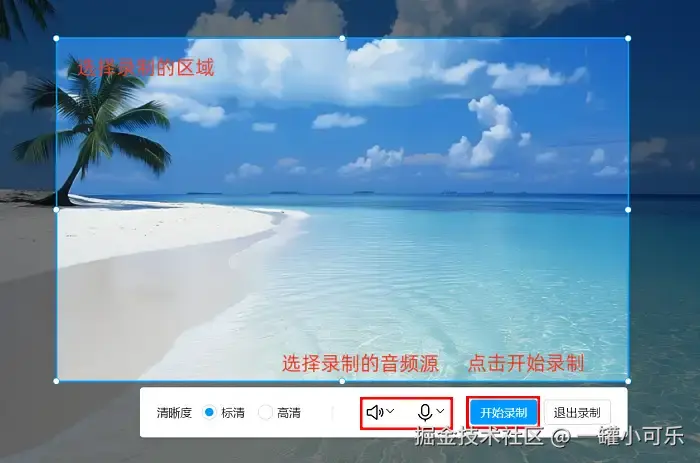 步骤2:接下来你可以根据需求调整各种参数,比如录制的屏幕区域,需要录制的音频源等。我们还可以在 “输出设置” 中调整录制的视频参数,如视频格式、帧率等。全部设置好后,点击右侧的 “开始录制” 按钮,就可以开始录制啦。