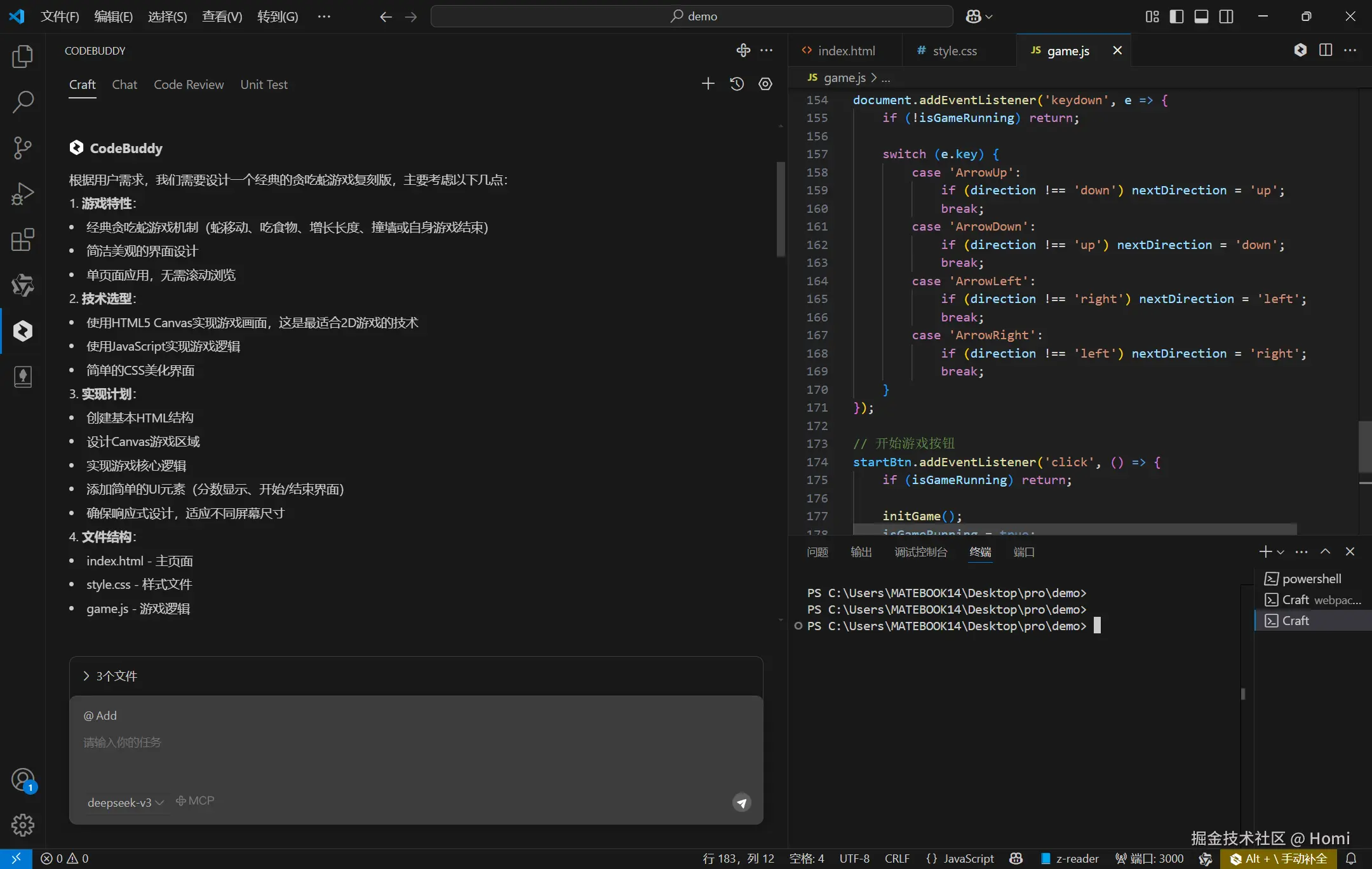 通过codebuddy生成的完整贪吃蛇案例,让我们看到,AI编程助手不再是简单的代码补全工具。它能够理解<canvas>绘图、游戏循环逻辑、碰撞检测算法等复杂需求,在100秒内生成300+行可直接运行的代码,这种进化正在重塑开发者的工作方式。