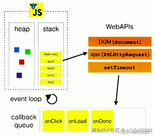 当主线程遇到异步任务时,后台会分配线程处理,并再处理完之后将其的回调函数放入任务队列。这就是任务队列的组成,注意到是异步任务的回调函数推入到任务队列的,而非异步任务本身。