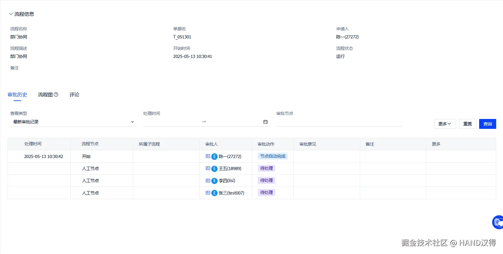 通过上述配置,我们就可以实现在流程中使用表单中指定人作为节点审批人!提交时指定审批人虽大大增加流程的灵活性,但在业务流程搭建过程中需要避免滥用。