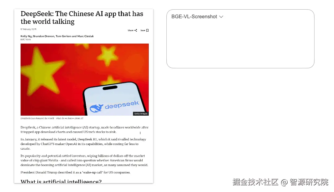 目前,BGE-Code-v1、BGE-VL-v1.5、BGE-VL-Screenshot三款模型已向社区全面开放,为相关技术研究与产业应用提供助力。