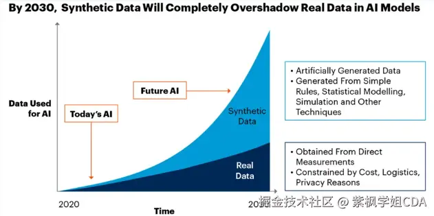 人工智能在分析领域的另一个有用应用是生成合成数据。事实上,根据 Gartner 的报告,预计到 2030 年,未来的人工智能模型将主要由合成数据训练。
