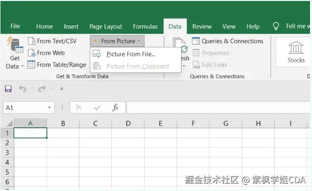Excel 上的“从图片插入数据”功能等工具可以帮助实现此功能。使用后端的计算机视觉,它可以将表格数据的图像转换为数字数据集,从而为你节省大量时间和精力。