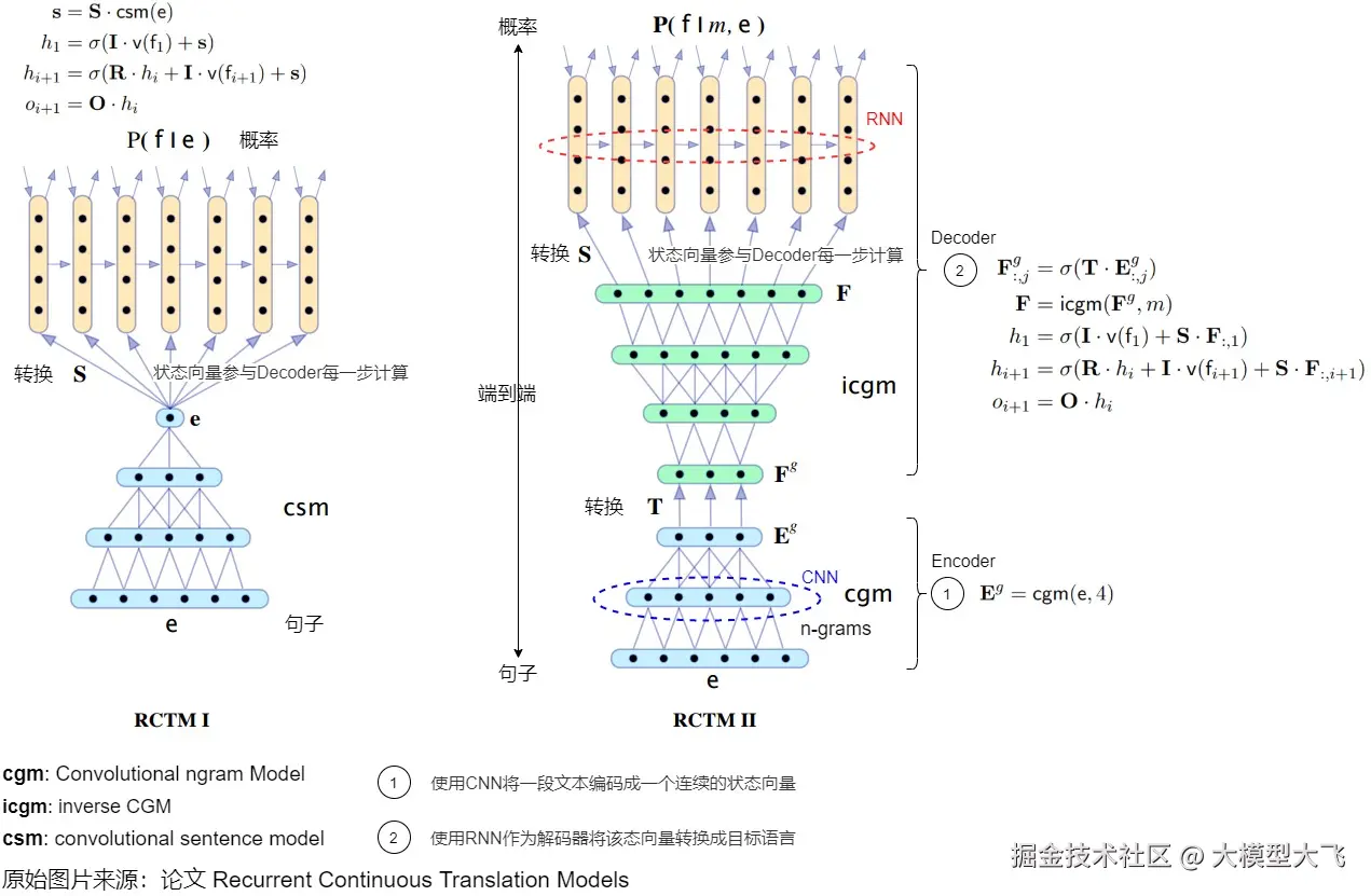 论文Recurrent Continuous Translation Models 被认为是神经网络机器翻译(NMT)的开篇之作,其特点如下: