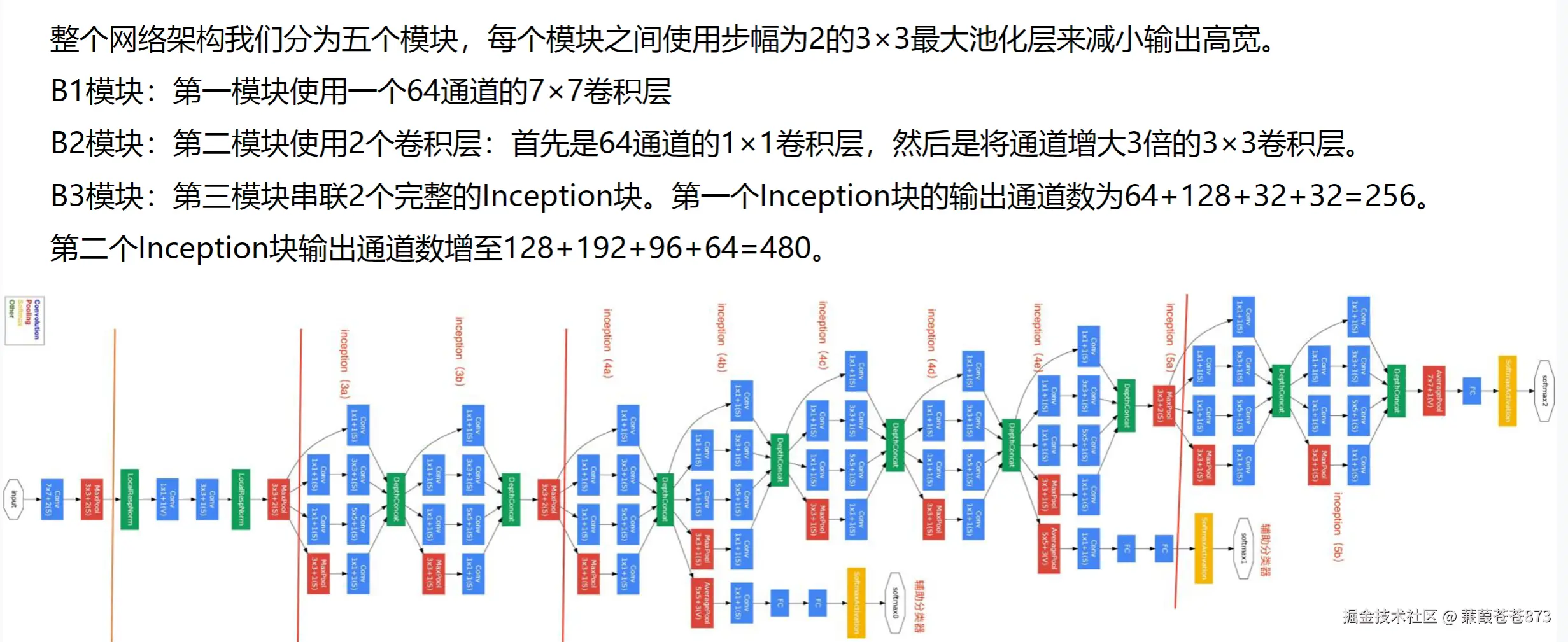 他的思想就是:当一个特征输进来,同时用四个支路并联对它提取和分析,然后,再进行输出,再用四个支路进行提取分析,卷积层的设计有这种模块化的结构,也是我们未来会常见到的一些设计方法。