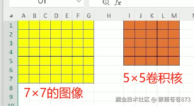 以上图为例:假设输入的是7×7的图像,用5×5的卷积核进行卷积,卷积完一次(步长为1)后输出的图大小为3×3
