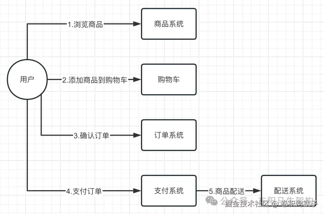 然后,用户就可以从订单系统的查询模块检索自己的订单,此时可以做一些非核心的业务流程。常见的非核心业务有:对商品进行退货、查询订单的物流状态、或者之前没有支付现在对订单进行支付等。
