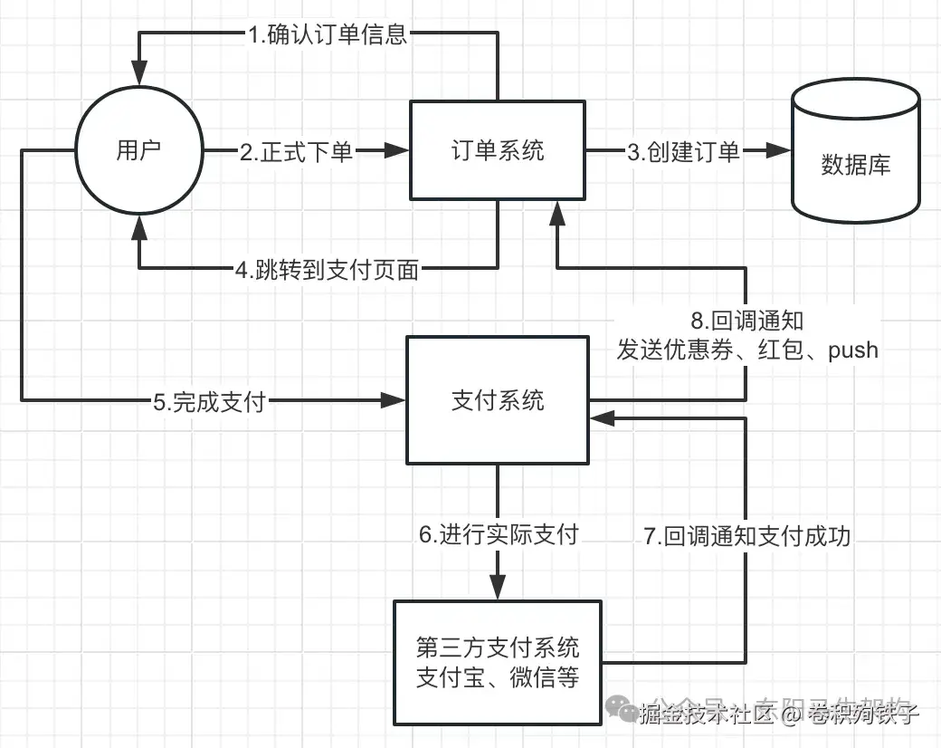 根据订单系统的业务流程图可以知道,在用户提交订单之后就是要支付订单,在支付成功之后订单系统要干很多事情。