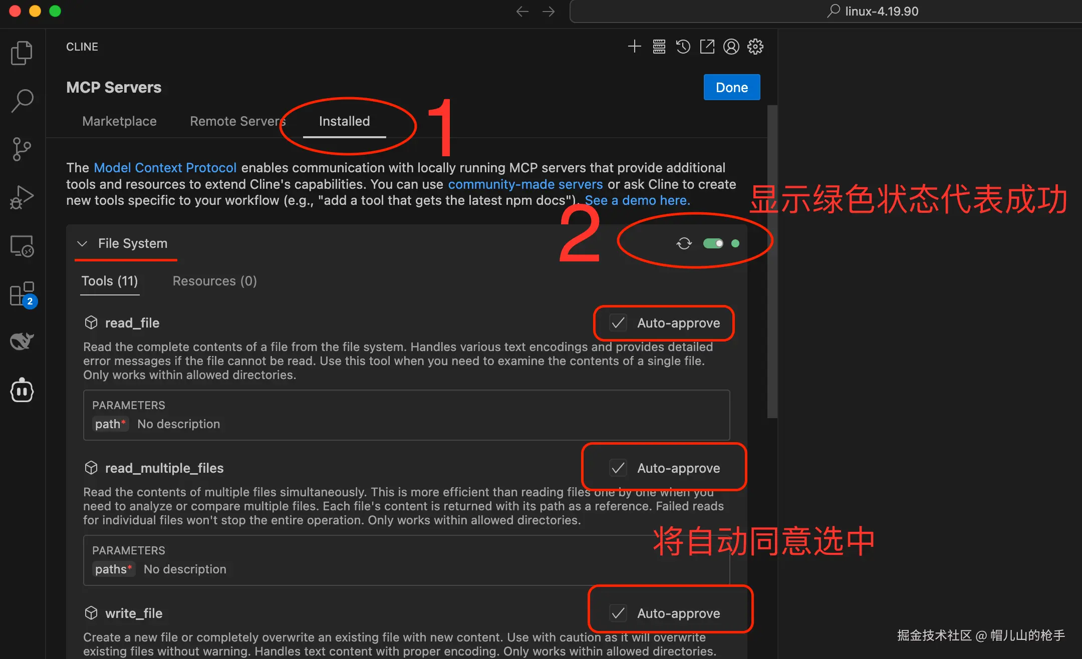 MCP快速上手,快来看看~ 帽儿山的枪手 2025-05-20 163 阅读1分钟 文件系统操作实现模型上下文协议(MCP)的Node.js服务器。 特性 ● 读/写文件 ● 创建/ /删除目录列表 ● 移动文件/目录 ● 搜索文件 ● 获取文件元数据 注意:服务器只允许在通过args指定的目录内进行操作。 第一步 第二步 第三步 第四步 第五步 第六步 第七步 技术文章持续更新,请大家多多关注呀~~ 搜索微信公众号,关注我【 帽儿山的枪手 】