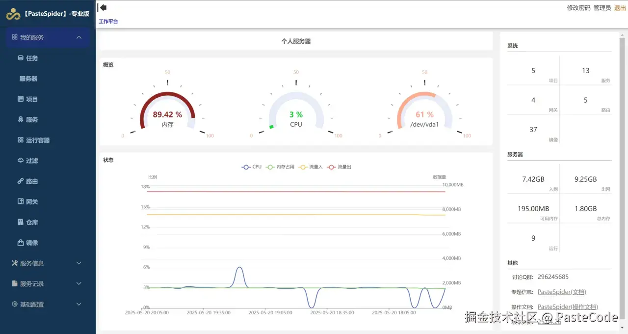部署工具,可以说非常多,比如最庞大的应该属于K8S了,还有另外一种的就是宝塔等,为啥还要介绍PasteSpider呢?