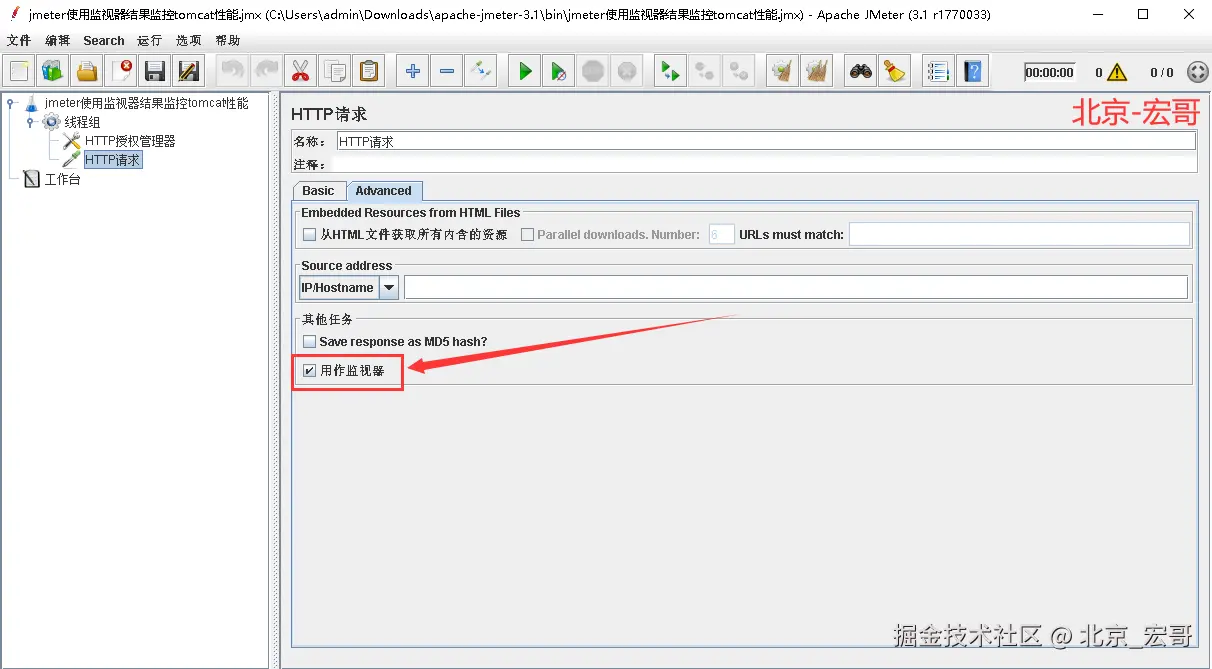 3.JMeter监视器结果无数据的解决方法:http请求,记得选中下方的“用作监视器”。