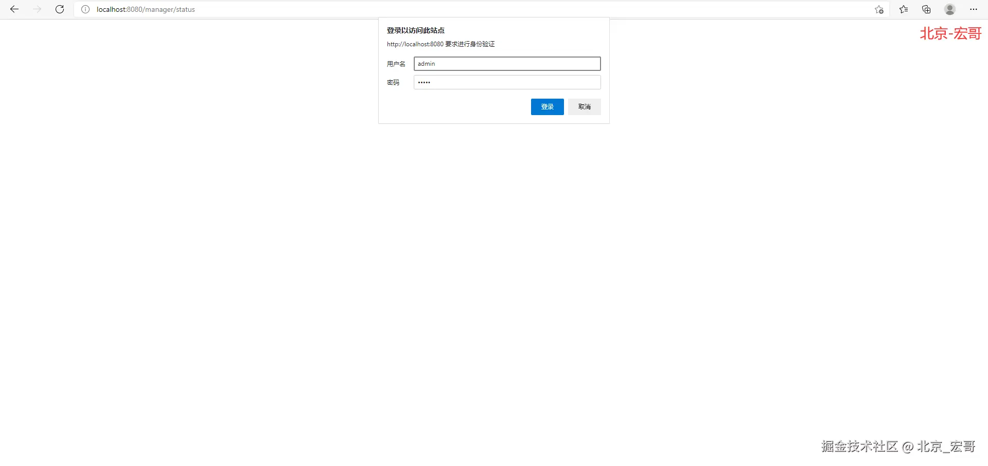 (2)弹出登录页面,输入刚刚xml配置的用户名和密码,如下图所示:
