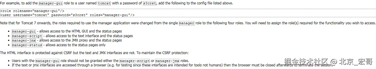 3、可以看出,tomcat9较之前有了变化,权限分为4种