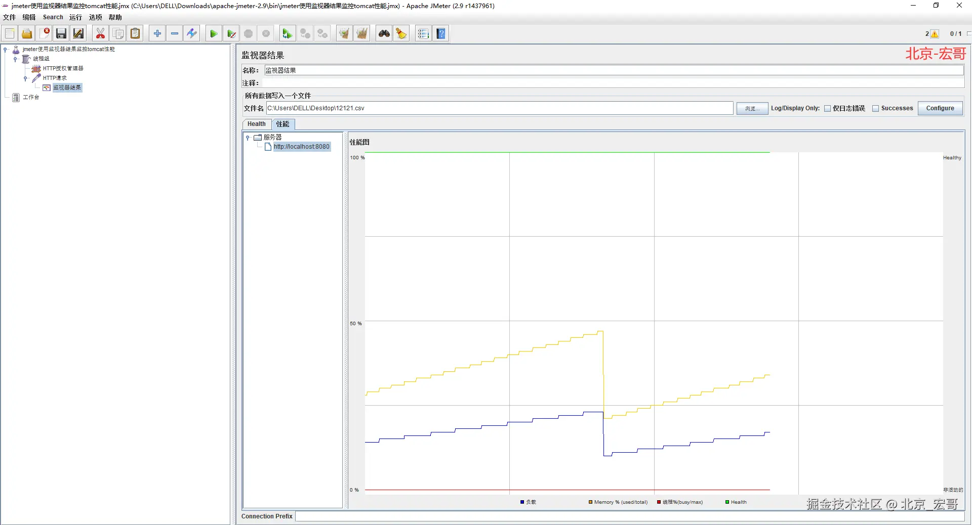 上一篇宏哥讲解了利用jmeter的插件来监控服务器资源,这一篇讲解分享如何使用jmeter的监视器结果监控tomcat性能。