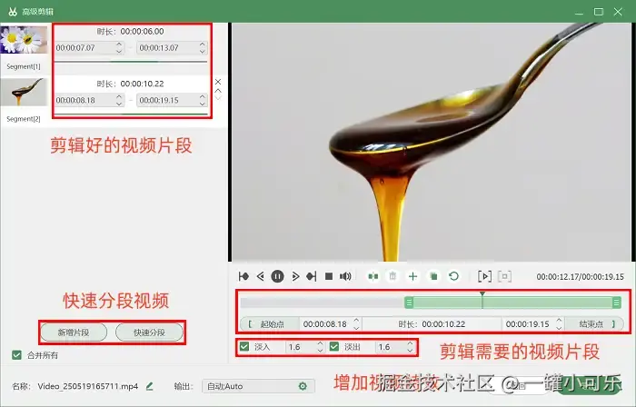 步骤3:录制好视频后,我们可以直接使用 “高级剪辑” 工具,对视频进行后期编辑操作,如快速分段视频、重命名视频等。