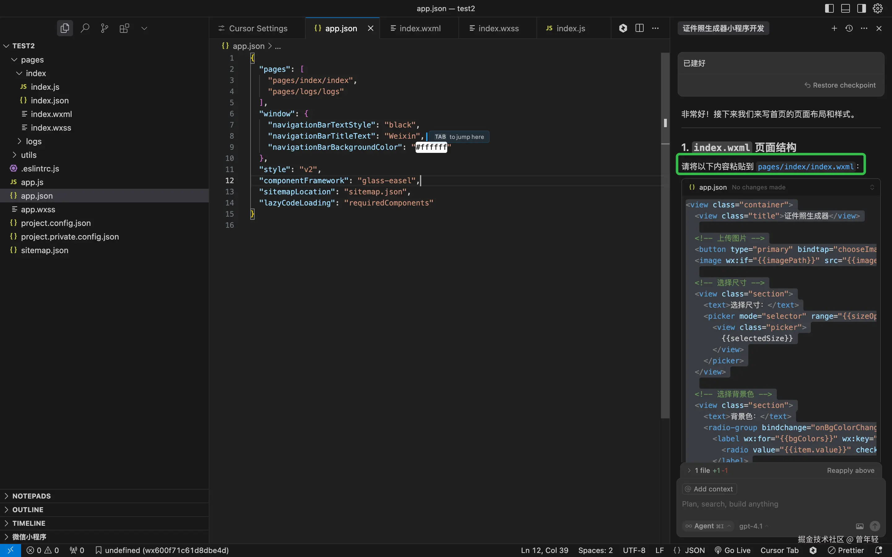 但是,我是来实测微信小程序的,删除掉代码,清空上下文,重头再来。