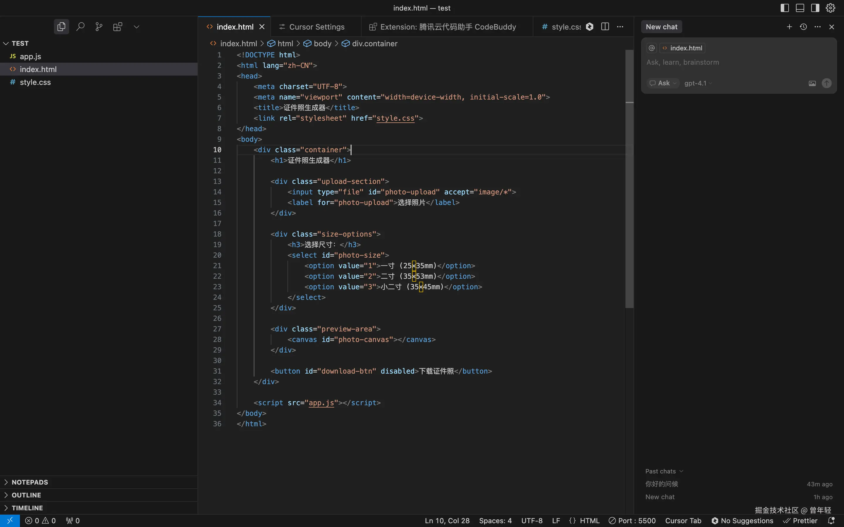 既然CodeBuddy装进了Cursor里,那免不得在一个工具里来测试下Cursor和CodeBuddy的能力。