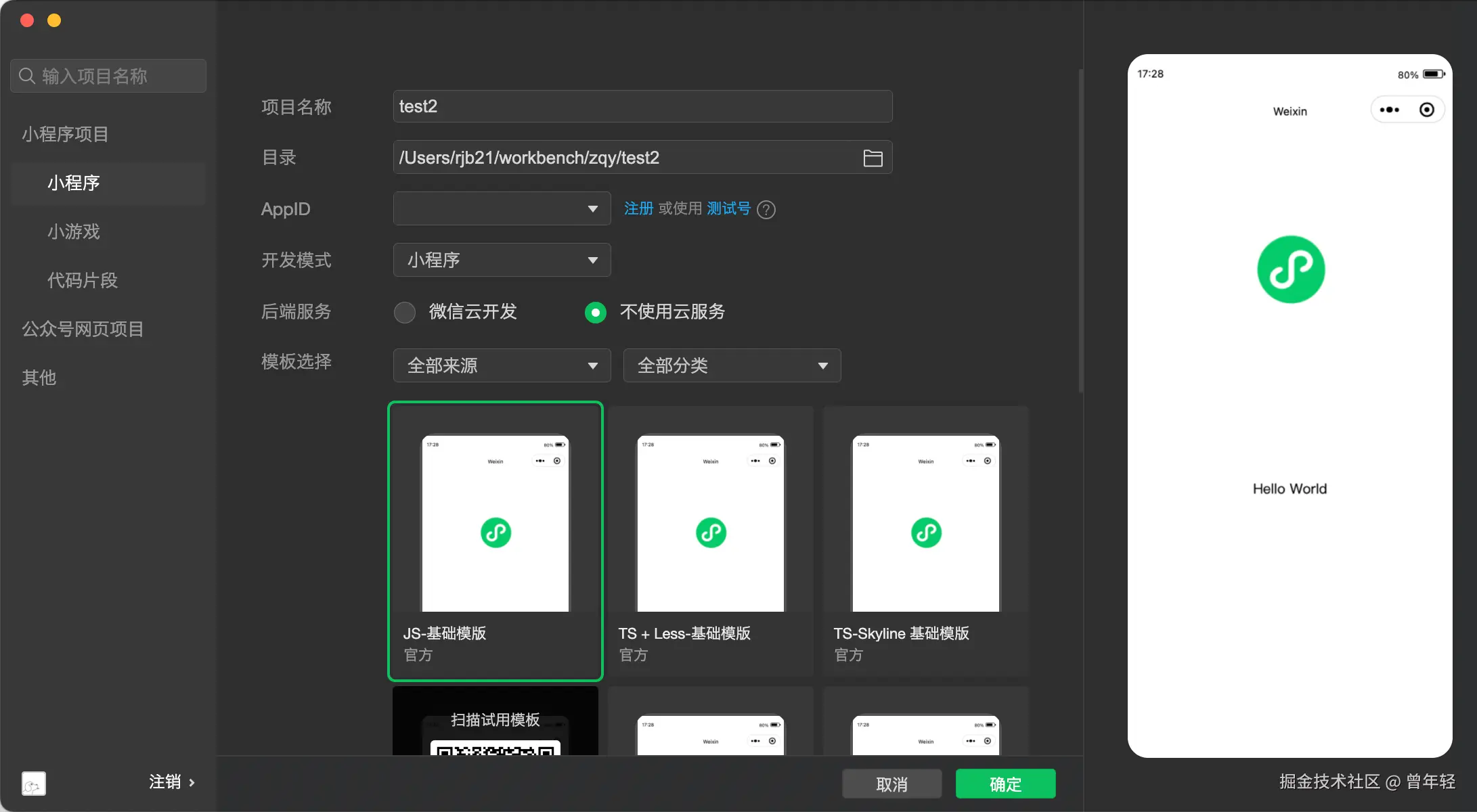 那么,我就先用微信开发者工具构建个初始版。