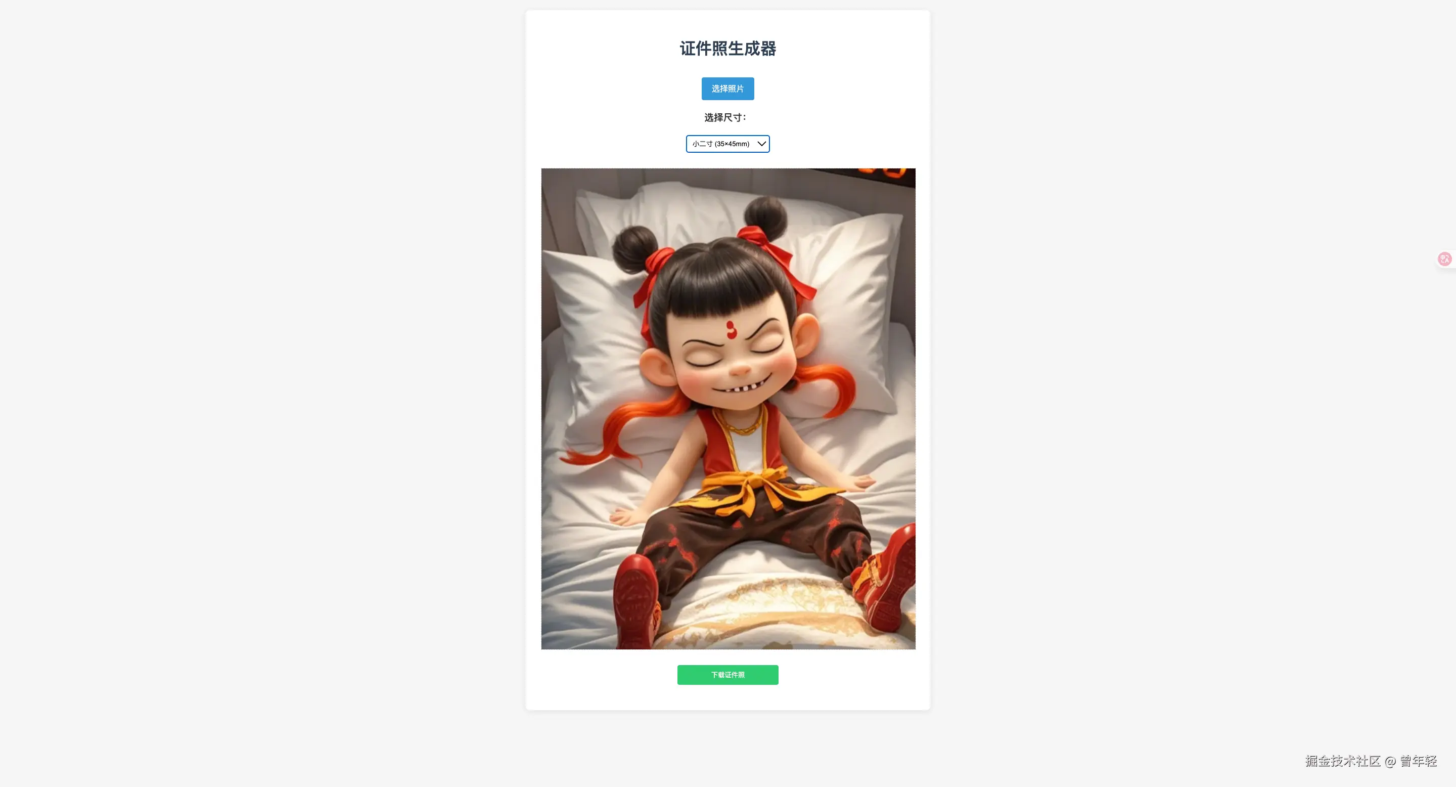 同理,丢一句:帮我做个证件照生成器小程序