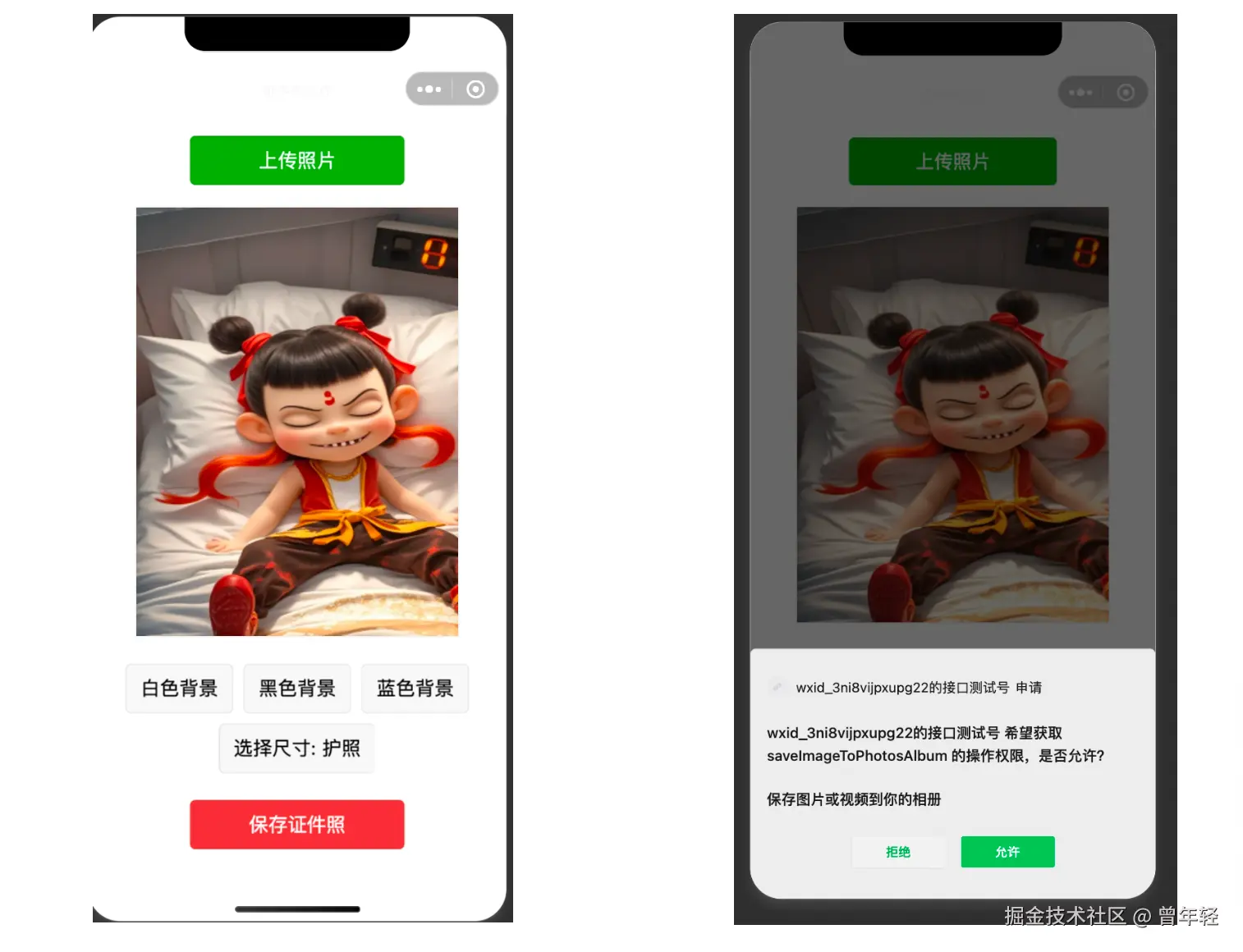 实测图片上传、尺寸、保存证件照功能都正常。