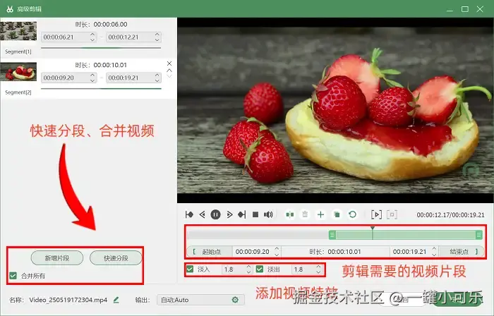 步骤3:录制结束后,我们就可以使用软件自带的 “高级剪辑” 工具去快速分段视频、剪辑需要的视频片段了。