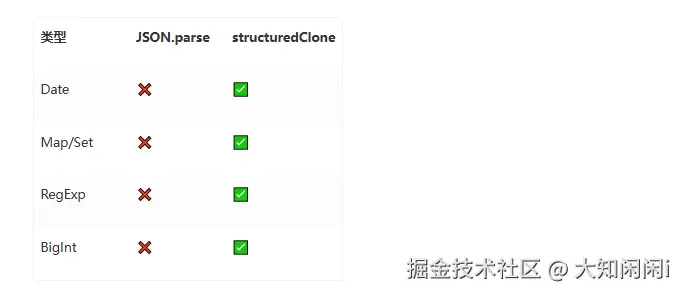 功能局限:无法直接处理特殊数据类型(如Date、BigInt)