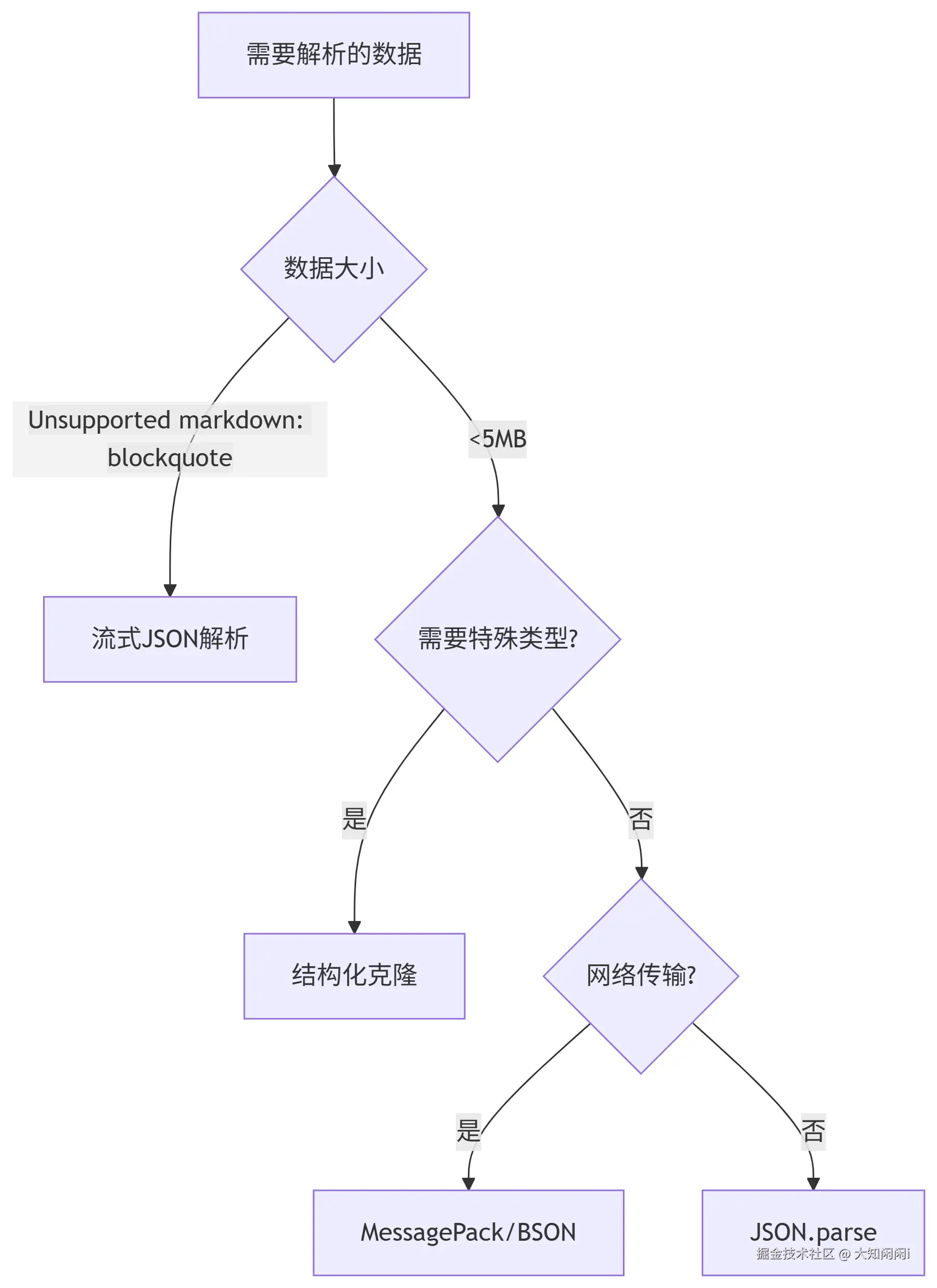 性能问题:解析10MB JSON需要200-400ms(主流浏览器)