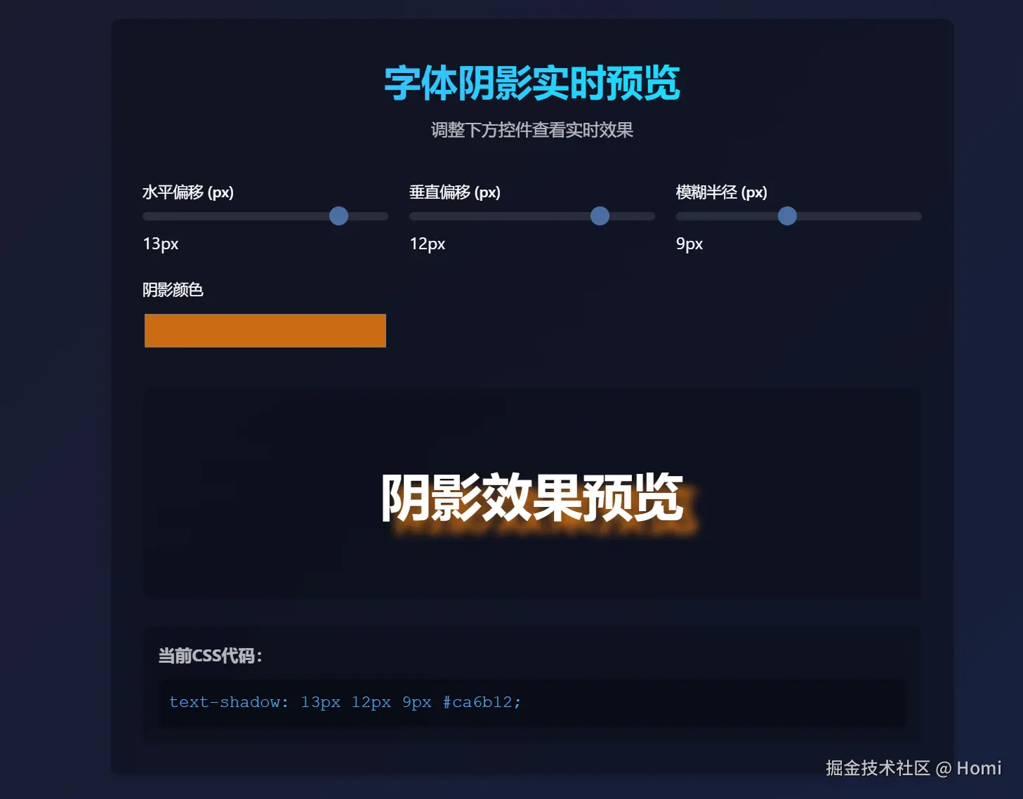 text-shadow样式与滑块输入控件 - 全链路生成:从DOM绑定、事件监听到CSS动态更新一气呵成