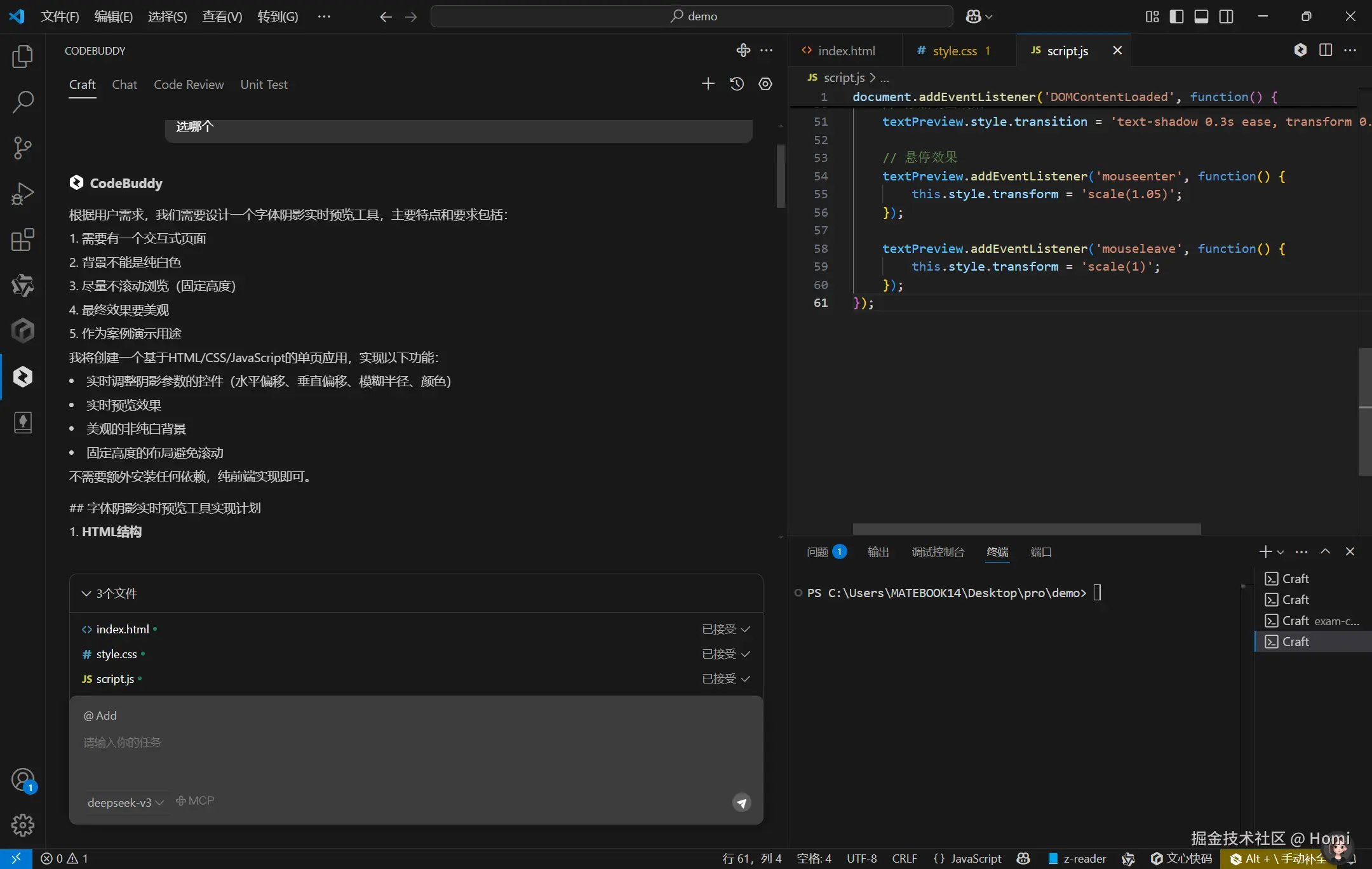 当CodeBuddy将textPreview.style.transform这样的细节都完美处理时,开发者得以专注核心创意。这不仅是效率革命,更启示我们:未来最好的代码,可能诞生于人类想象力与AI执行力的握手瞬间——就像画家指挥智能画笔,在数字画布上共舞。